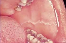 A white line along the inner cheek, is typically caused by friction from teeth clenching or grinding.